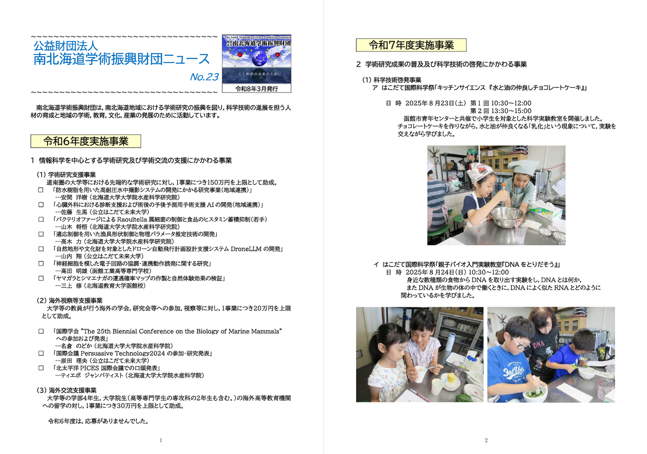 第22号 南北海道学術振興財団ニュース(PDF 4,024KB) 第21号 南北海道学術振興財団ニュース(PDF 362KB) 第20号 南北海道学術振興財団ニュース(PDF 1,042KB) 第19号 南北海道学術振興財団ニュース(PDF 612KB) 第18号 南北海道学術振興財団ニュース(PDF 422KB) 第17号 南北海道学術振興財団ニュース(PDF 320KB) 第16号 南北海道学術振興財団ニュース(PDF 428KB) 第15号 南北海道学術振興財団ニュース(PDF 440KB) 第14号 南北海道学術振興財団ニュース(PDF 412KB)